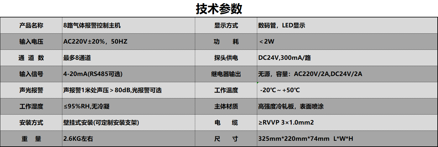 HS006系列主機是一款八通道(dào)的氣體報警控制器。它由通用金屬外殼,開關電源,主闆,接口闆,報警器等部分組成(chéng)。顯示部分由0.8英寸數碼管組成(chéng),輪流顯示各通道(dào)濃度,顯示清晰可适應不同的光線環境,同時帶有通道(dào)狀态信息指示;按鍵部分由多個高質量按鍵組成(chéng),按壓手感良好(hǎo),有效提升用戶操作手感。程序設計時,采用高安全按鍵觸發方案---按下爲開始識别按鍵,松開完成(chéng)識别。20ms以下按鍵信号爲無效,20ms~3秒之間按鍵信号爲正常按鍵,超過3秒按鍵信号爲長按;具備聲光報警(光報警選配),多組報警繼電器輸出(繼電器輸出可用戶自己定義以适應不同場合使用)。