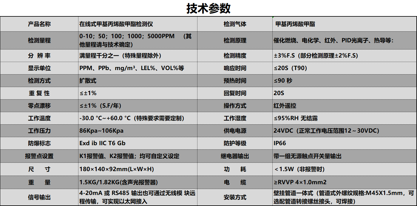 産品名稱:在線式甲基丙烯酸甲酯檢測儀