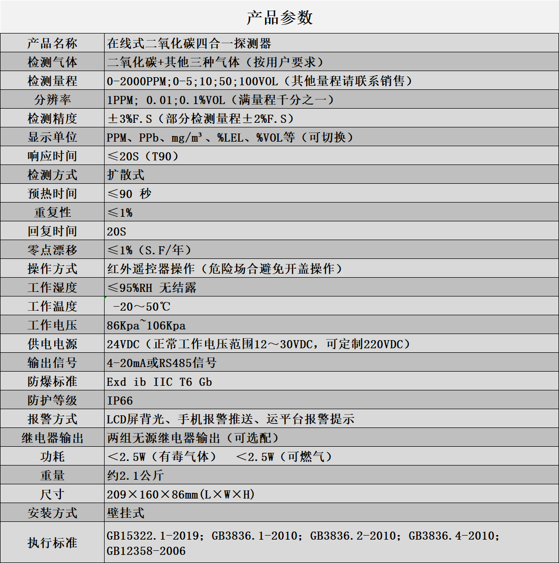 環順科技在線式二氧化碳四合一氣體探測器、(可同時檢測4種氣體、除二氧化碳外、在加三種不同氣體)采用進口傳感器及全新32位低功耗處理器;OLED儀表盤設計,顯示直觀。電路采用4層布線,對弱信号及抗幹擾更強;獨立的高精度進口16位AD芯片及特有信号處理算法,測量數據精度更高更穩定;4-20mA、RS485、NB、4G無線傳輸等多種輸出信号可選擇, 方便接入各種報警控制器、PLC、DCS等控制系統和平台。